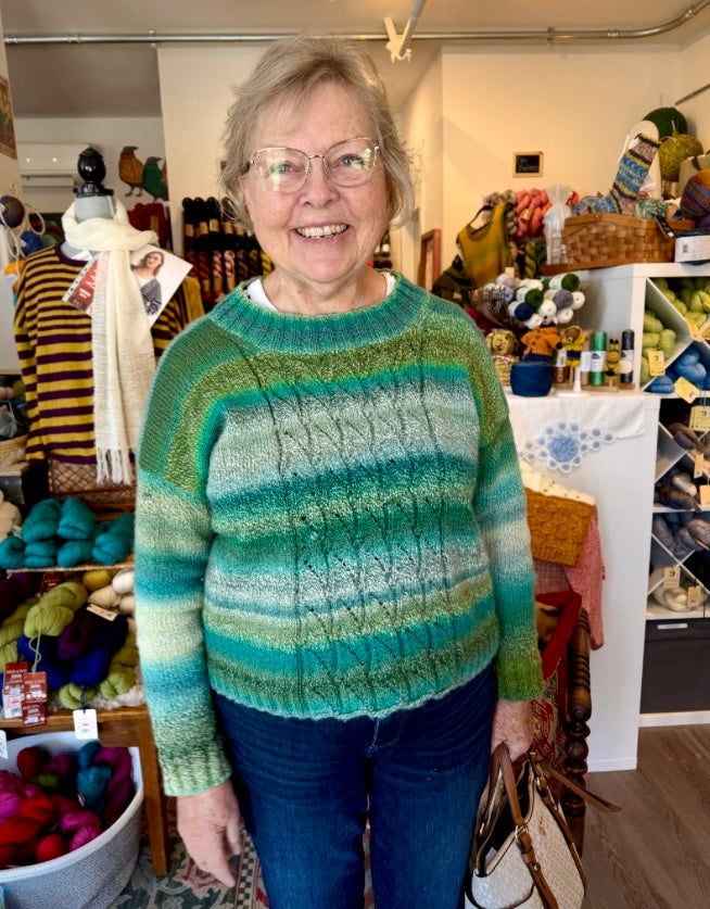 This is a quick knit. Becca knit hers with Lang Venus. This is another DreaKnits pattern.