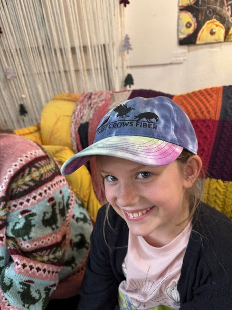 Three Crows Fiber capOK, we didn't make this super cute cap, but we definitely inspired it! Check out all the in-house, ice-dyed Crow swag!