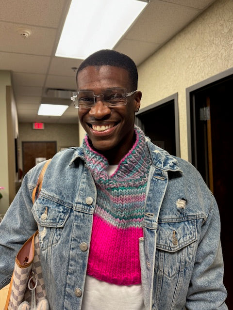 Feederbrook Farmis located in northern Baltimore County, Maryland, and has been family-owned and operated since 1970. Jeff Knits the Night and Day Cowl by DreaKnits (Note difference of Becca above). Nicole knit the hat, a pogknits pattern entitled Crows Feet