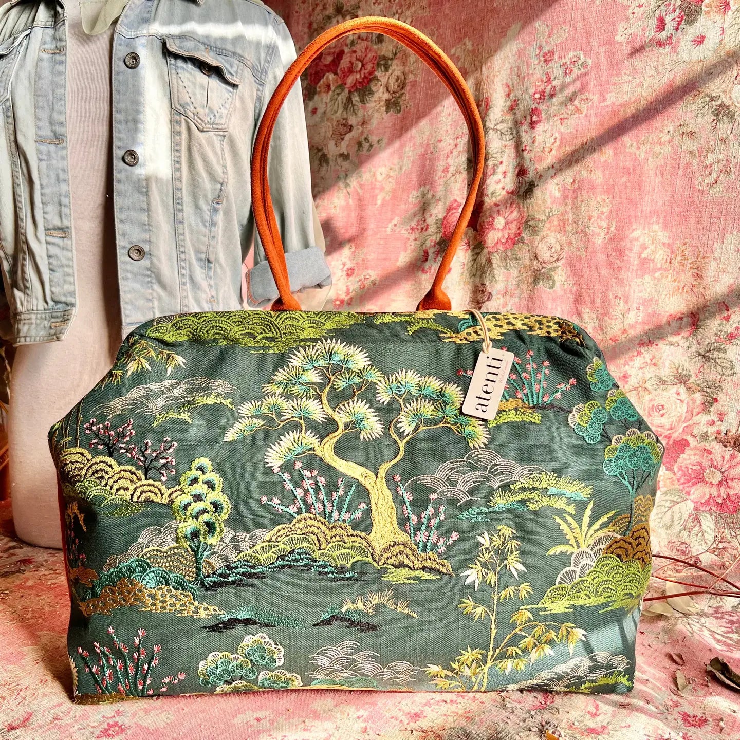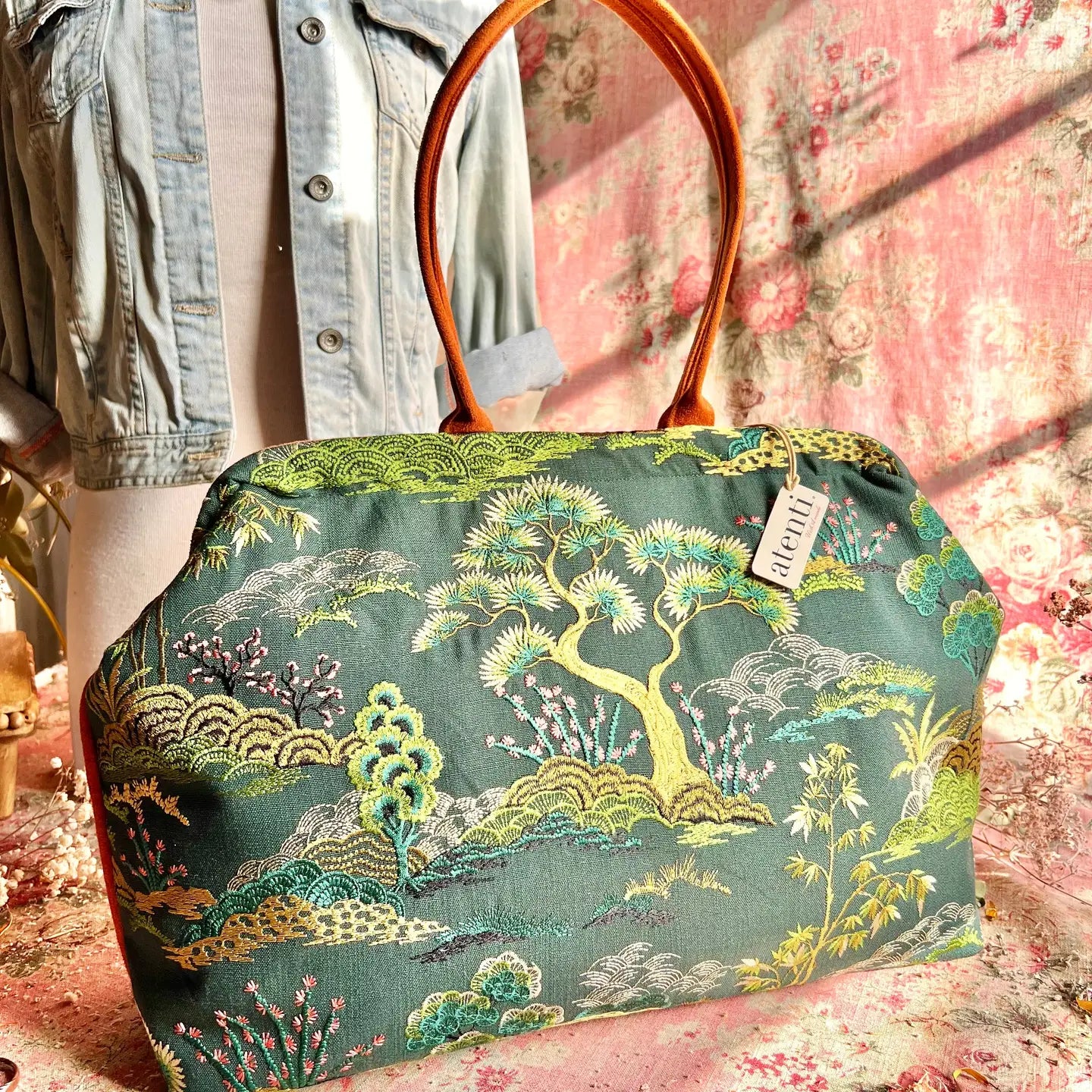 Indulge in elegance and serenity with the Zen Pioneer. The intricate garden design evokes a sense of calm and sophistication. Experience a touch of art and culture with every stitch. Opening with a 16" rectangular snap frame, the Atenti Pioneer carpet bag flaunts a fully lined, water-resistant taffeta interior featuring a zippered pocket, an open divided pocket with a cell phone slot, and double 21” straps boasting a 10’ drop and metal feet. A classic style reimagined, this bag will quickly become your go-to for any occasion. Take your flower style to the the next level!