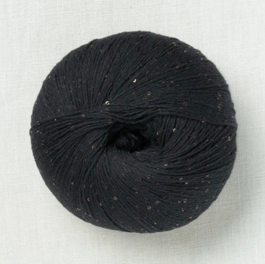 Delicate paillettes catch the light & subtly sparkle as you move in garments knit in Marilyn. The soft, drapey cotton & nylon yarn has a fingering weight gauge for sophisticated wraps, camisoles, bolero jackets & pullovers.
